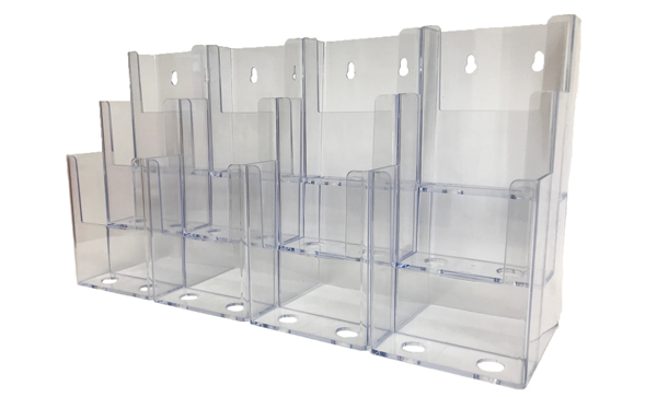 Display all your pamphlets and trifold brochures with this sturdy twelve compartment clear acrylic holder. Brochure displays are essential for sharing information and building brand awareness. Available for countertop placement or wall mounting. This three tiered acrylic holder is a great way to organize and display your important information. Freestanding and portable so you can display your brochures on desks, counters, or almost any flat surface. A perfect way to catch your audiences eye with a selection of literature and multiple topics to choose from. Great for use in health departments, fairs, schools, medical offices as well as any place to display your selection of pamphlets, brochures or rack cards. What’s more, these holders feature a simple, sleek design for a professional look at an affordable price.