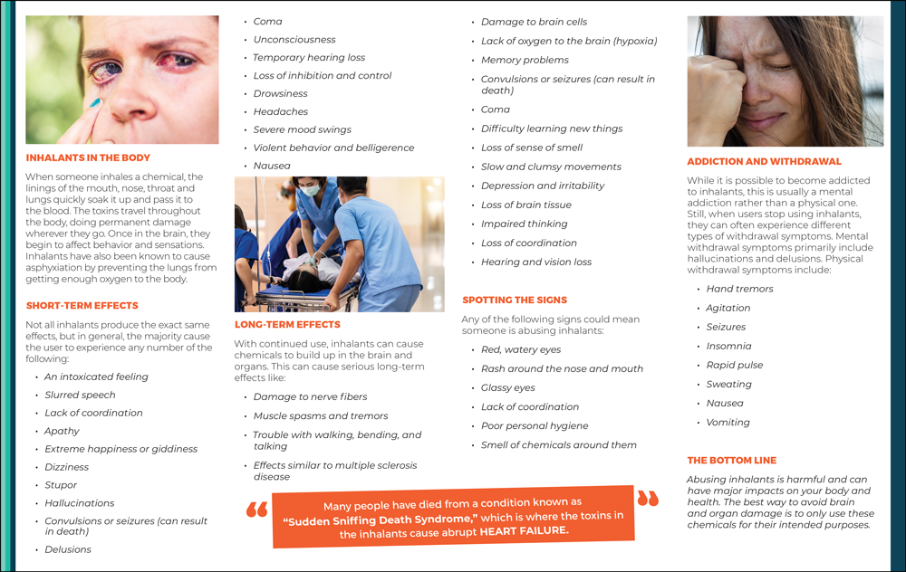 Each Inhalants: Toxins in the Air pamphlet includes the following information: