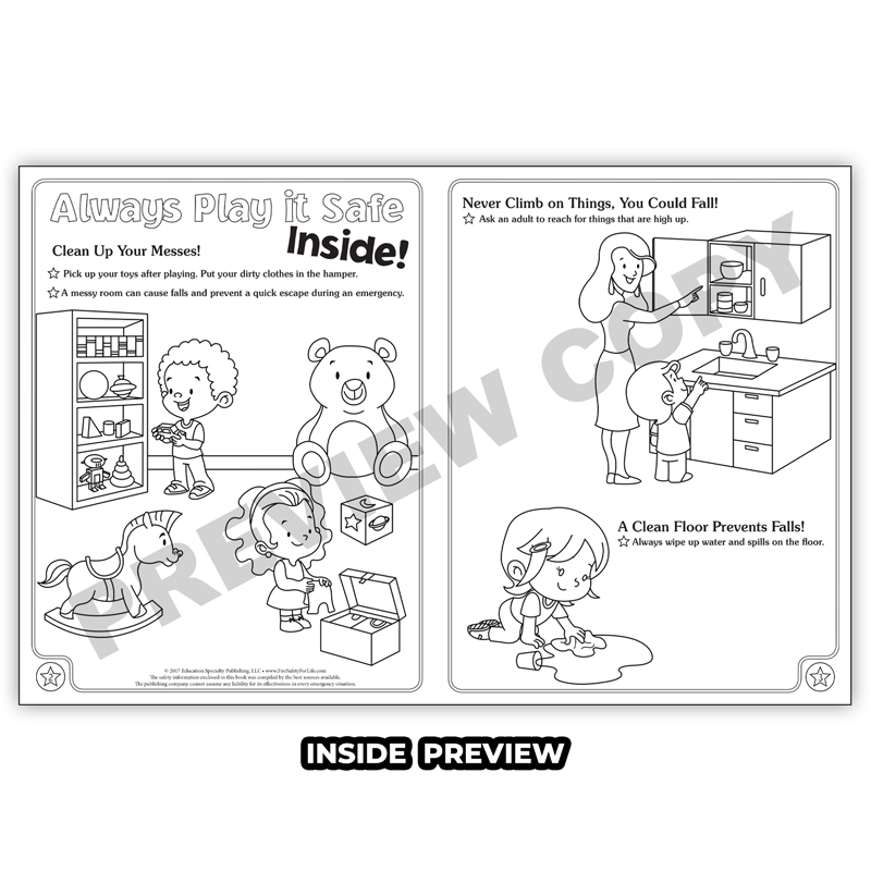 Teach fire safety, injury prevention, and essential emergency tips with our Play it Safe: Be A Super Safe Kid Coloring & Activity Books. Filled with creative coloring pages, puzzles, and interactive games, this book is specifically designed to help kids stay sharp on fire safety, home hazards, and emergency readiness. From spotting home dangers to practicing what to do in a fire, learning about safety is as fun as playtime!