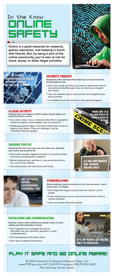 What’s more, these cards are a smaller, pocket-sized version of our matching Online Safety Displays. Each card includes the same detailed information and vivid graphics, but in a smaller portable size. Together with the display, the cards are an easy companion piece to hand out after your presentation investing in the digital well-being of your community. Order your cards today and be the catalyst for creating a digitally savvy and secure community!