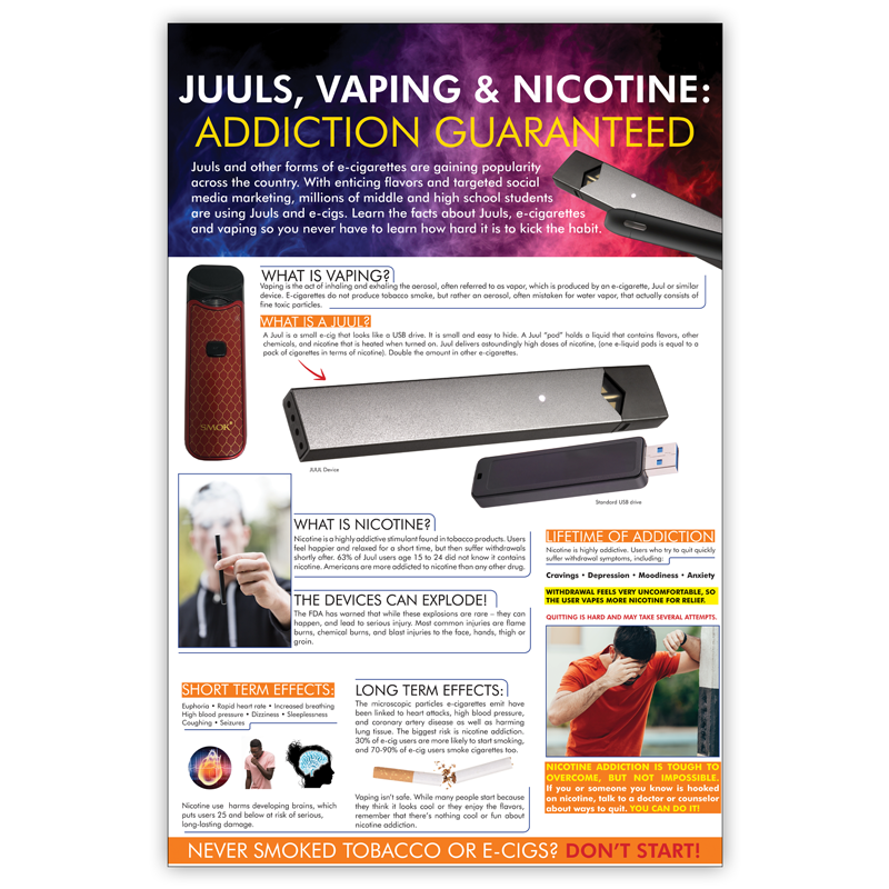 This Juuls, Vaping and Nicotine Wall Graphic covers the following topics:
