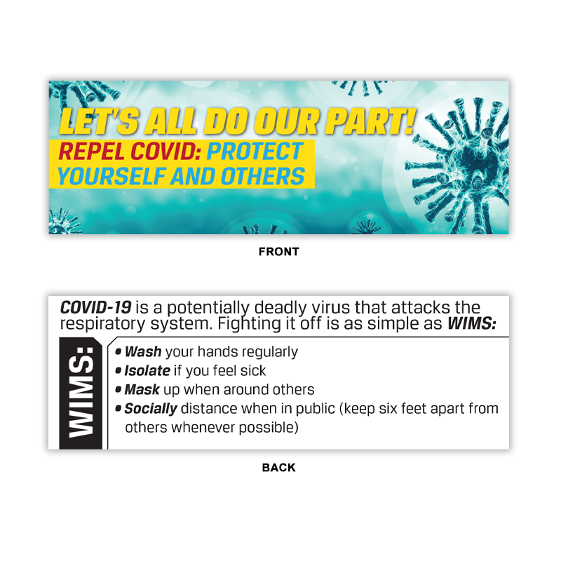 These useful, “Let’s All Do Our Part – Repel COVID: Protect Yourself and Others” awareness bookmarks stress the importance of practicing safety measures against COVID-19. These bookmarks provide clear and actionable steps for individuals to take to protect themselves and others from the virus. This can help promote behavior change and motivate individuals to take necessary precautions to stay healthy. Additionally, these awareness bookmarks can help foster a sense of community engagement and responsibility. By encouraging individuals to take action to protect themselves and others, bookmarks can help build a sense of shared responsibility for public health.