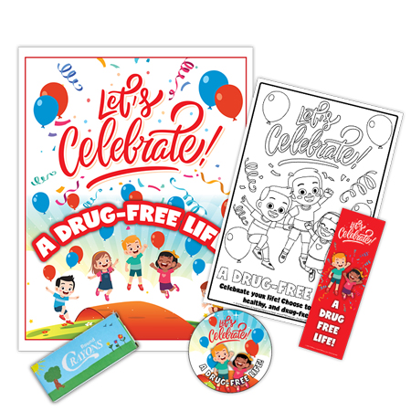 This “Let’s Celebrate a Drug Free Life” coloring and activity pack includes four of our drug free educational products. Specifically designed for young children. These packages are a great resource to help educate children about drugs and why they are so dangerous. Pre-assembled for easy distribution, these kid packs are great to hand out during Red Ribbon Week, awareness events, health fairs, schools and more! You can also add your custom message and logo to get the recognition your organization deserves!
