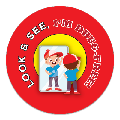 Sticker Up for Anti-Drug Prevention Events with ‘Look & See, I’m Drug-Free’ Stickers. These colorful stickers help teach kids that when they look in the mirror, they should be proud for making smart choices. Kids can put these colorful stickers on their camp folders, water bottles, bags, and more.