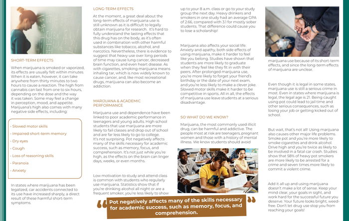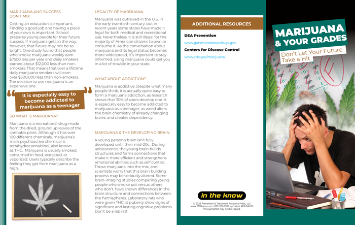 If you like these Marijuana and Your Grades Pamphlets, then check out more of our Marijuana Prevention Materials.