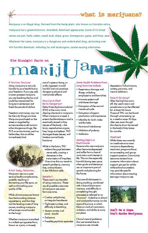 Each Marijuana: Get Straight on the Facts Brochure includes the following information: