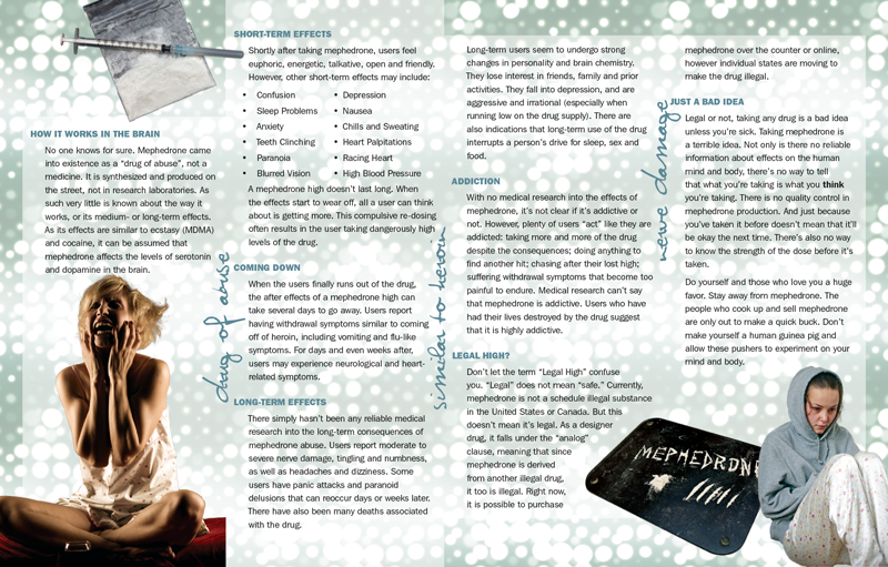 - Addresses the serious dangers of experimenting with designer drugs and the extraordinary dangers of mephedrone