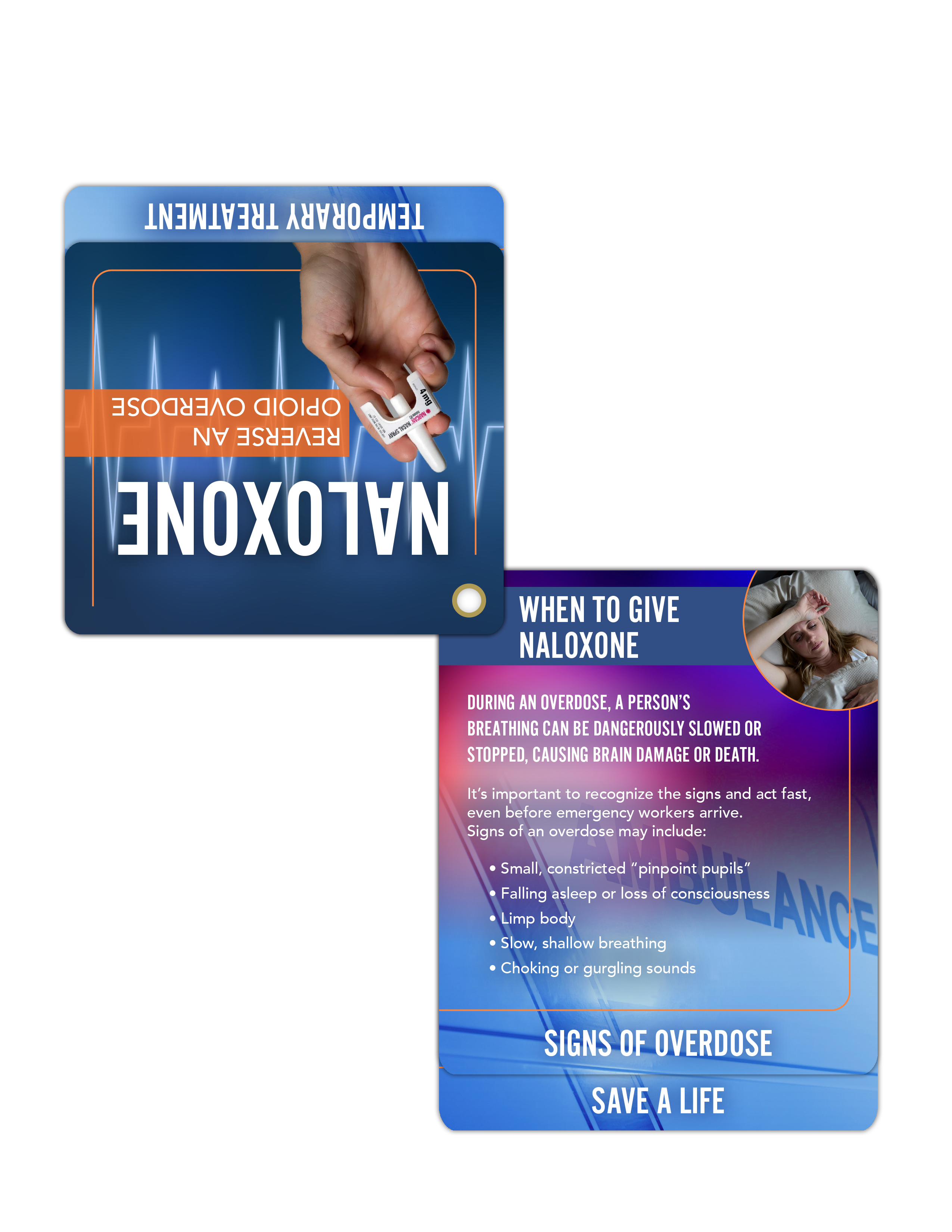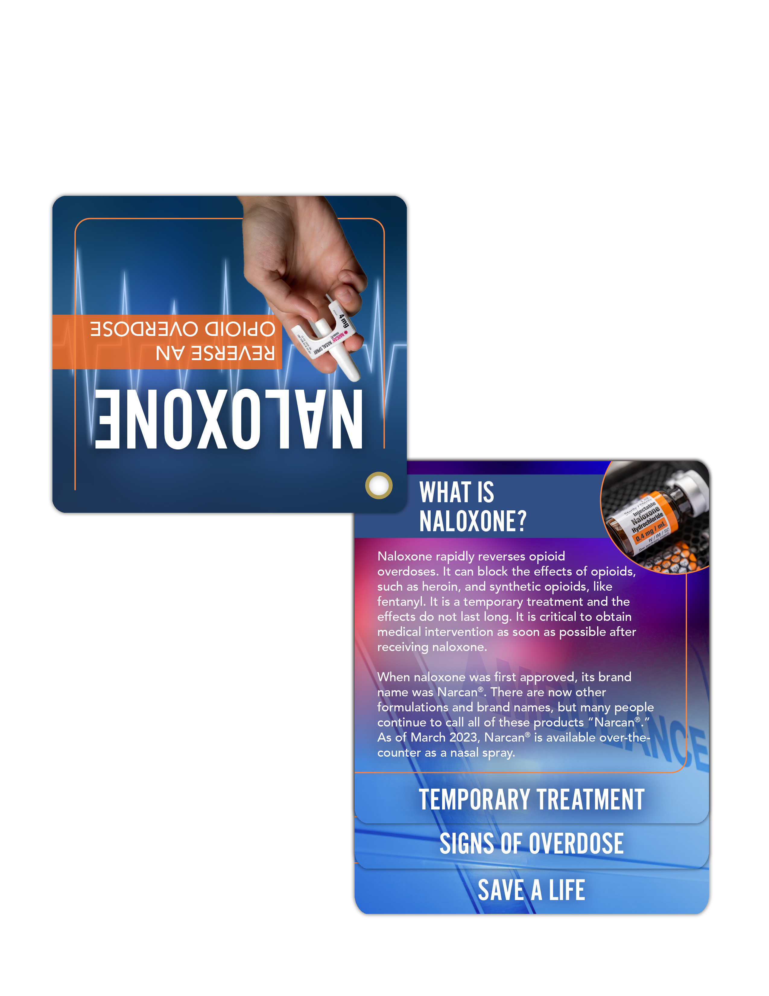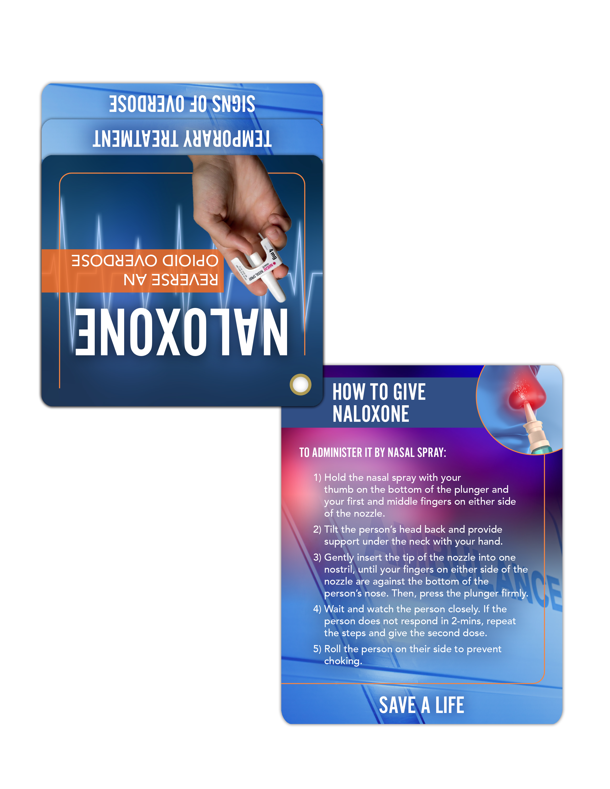 Hand them out at at health workshops, law enforcement training sessions, or even during substance abuse awareness events. Every flip becomes a tool for preparing individuals and communities to respond effectively to opioid emergencies, potentially saving lives and contributing to a safer environment.