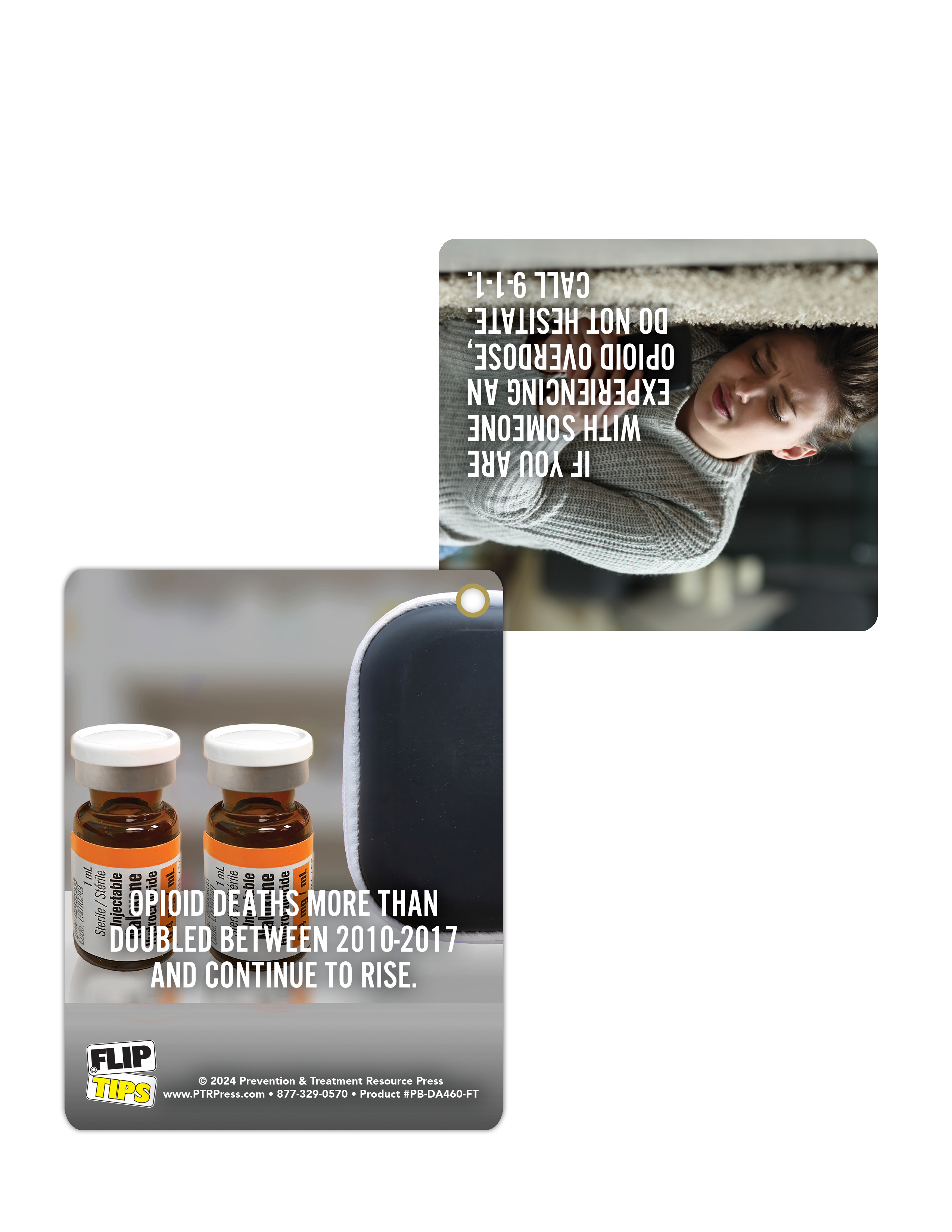 Make a lifesaving impact in your community with our Naloxone: Reverse An Opioid Overdose Flip Tips. These rotating wonders deliver crucial information with straightforward language and impactful visuals. Whether it’s understanding the signs of an opioid overdose or learning the step-by-step process of Naloxone administration, each flip is a beacon of knowledge that transforms potential bystanders into potential lifesavers.