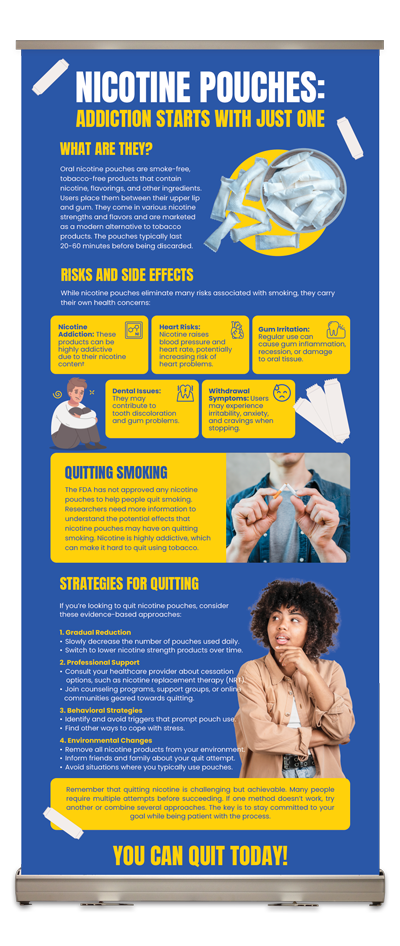 They may look small, but nicotine pouches pack a punch—and not in a good way. With their sleek packaging and smokeless appeal, these tiny pouches are marketed as a “cleaner” alternative to traditional tobacco. But the risks? They’re anything but harmless. The retractable Nicotine Pouches Presentation Display lays out the facts, breaking down what these pouches are, how they impact health, and why they’re far from a safe bet.
