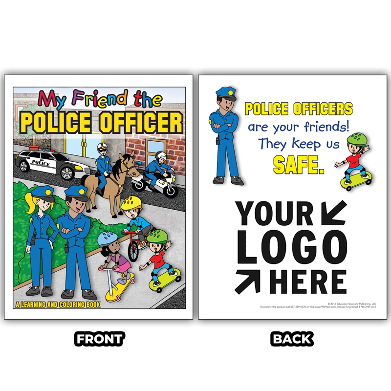 Educate kids about law enforcement, safety, and community values with these fun and engaging “My Friend the Police Officer” Coloring and Activity Books. This book provides a unique opportunity for young ones to learn about the role of officers, their responsibilities, as well as the importance of justice. By distributing these activity books, officers can engage with children in a positive and constructive manner. It allows them to build trust and create a friendly image within the community. As a result, kids see officers as approachable figures who care about their development and well being.