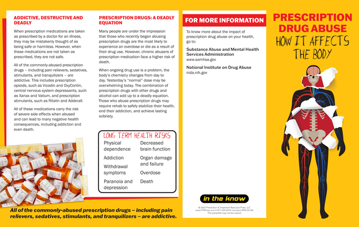 Combat Prescription Drug Abuse with our How it Affects the Body Pamphlets. These handouts are specifically designed to highlight the potential risks associated with prescription drug abuse, promoting vigilance and informed decision-making.