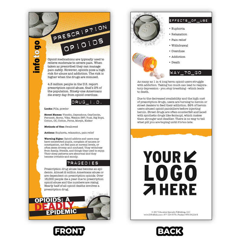 This is a great stand alone piece or together with our other opioid rack cards. Help educate your community on the dangers of opioids and how to recognize the drug and how it is used.