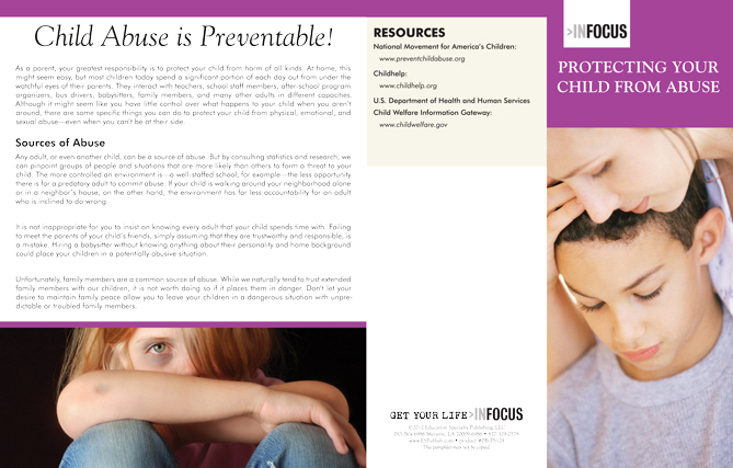 If you like these “Protecting Your Child from Abuse” Pamphlets, then check out our “Talking With Your Child About Abuse” Pamphlets.