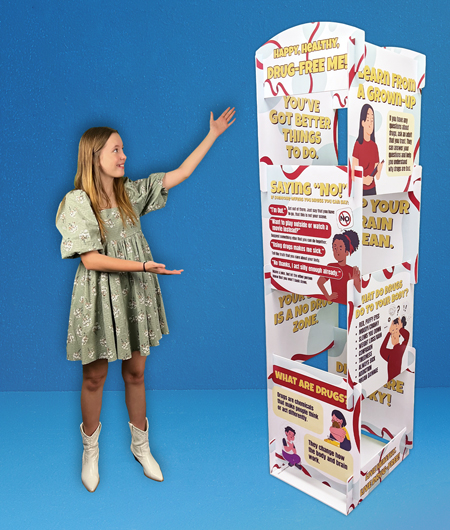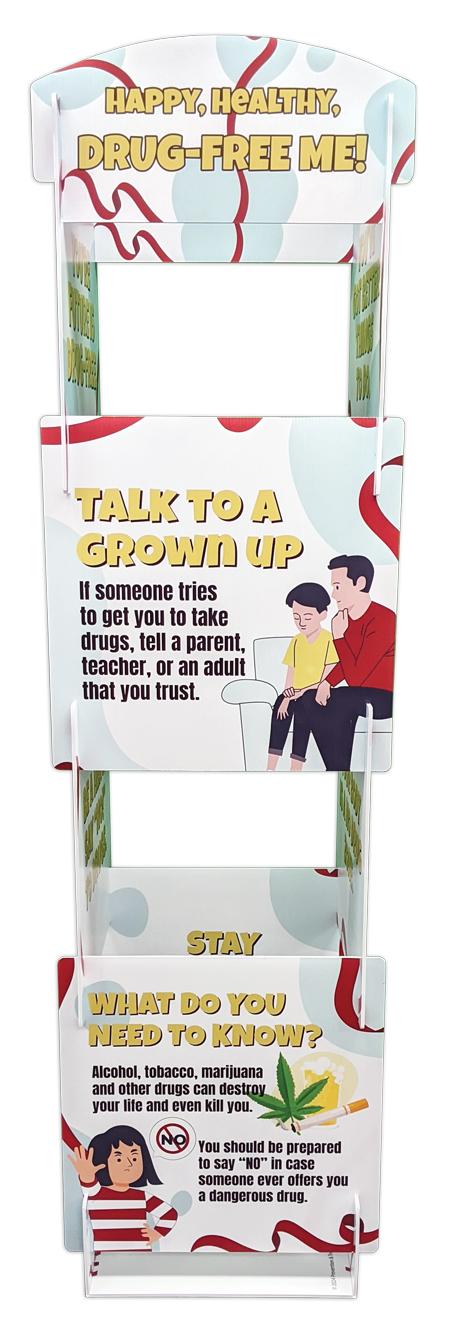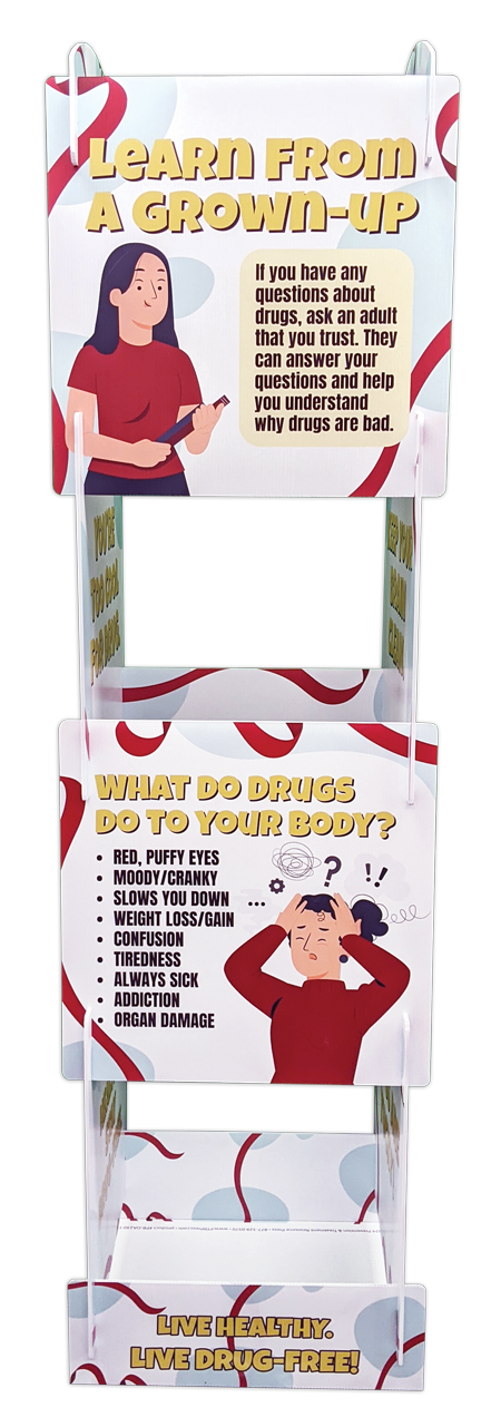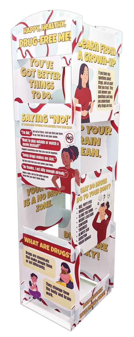 Make Red Ribbon Week unforgettable with our “Healthy, Happy, Drug-Free Me” Info Tower. This tower display is an interactive experience! Kids will love the bright, bold images and easy-to-understand messages that encourage them to make healthy choices. It transforms the concept of drug prevention into an exciting adventure, sparking curiosity and promoting positive decision-making in a way that’s fun and relatable.