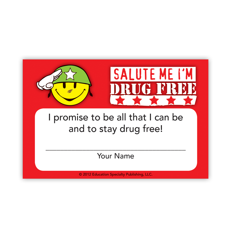 Strengthen kids’ commitment to being drug free with the Salute Me I’m Drug Free pledge card.