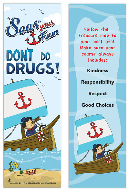 Get kids ready for an adventure with these double sided nautical “Seas Your Future, Don’t Do Drugs” Bookmarks. A great handout to promote healthy choices and behaviors for school events, classroom prizes, after care, fairs, and more. Printed on glossy card stock, these durable bookmarks are made to last. This colorful bookmark is a great way to promote substance abuse prevention to a younger age group, helping them to make informed decisions when they are older. By providing a constant reminder of the importance of staying drug free, these bookmarks can help kids stay on track and make good choices. What’s more, these bookmarks are a cost effective tool for promoting healthy habits and preventing drug use. They can be distributed widely and are an easy way to reach a large audience. Let’s “Batten down the hatches” and say NO to drugs!