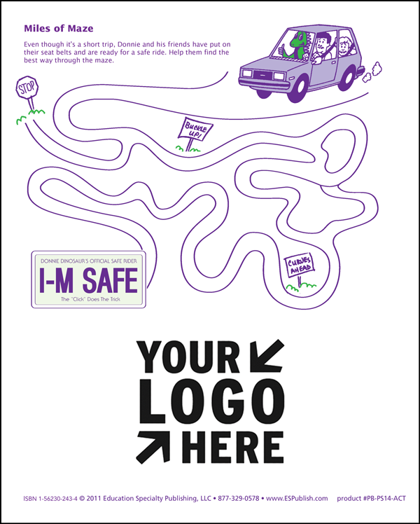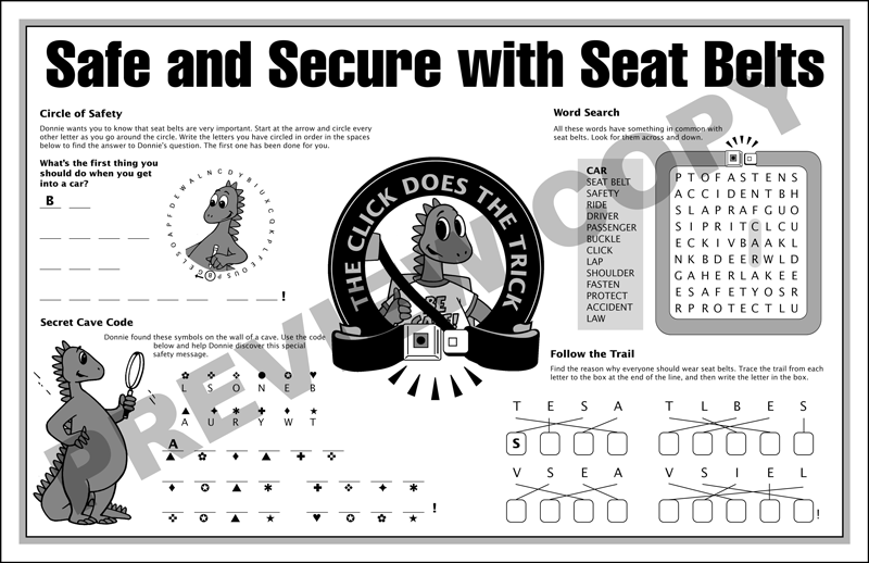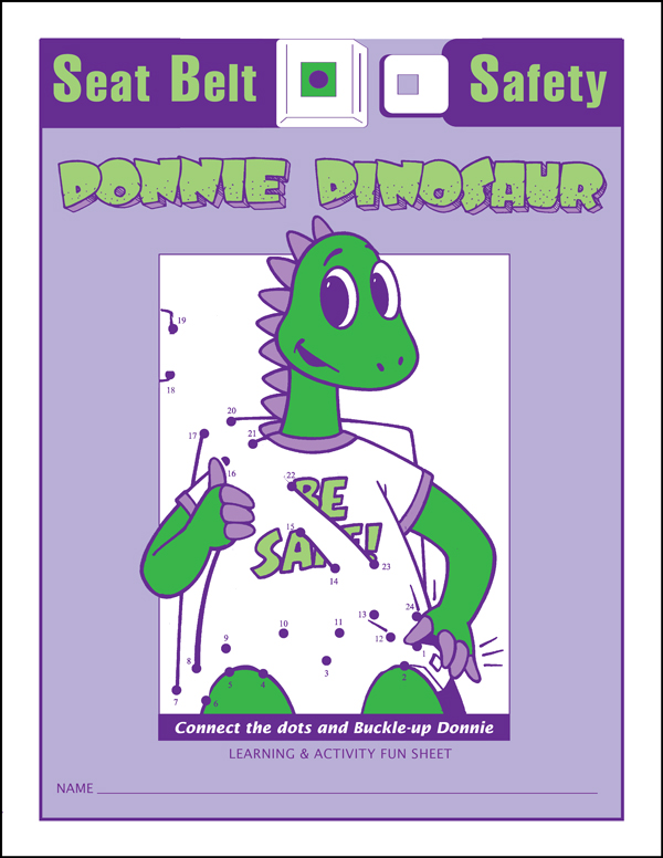 Don’t let children in your community get potentially hurt in a car wreck. Team up with Donnie Dinosaur on his quest to remind children to fasten their seat belts with our Donnie Dinosaur’s “Seat Belt Safety” Activity Sheet.