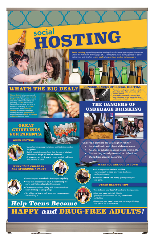 Our portable banner is an effective way to highlight the problem of social hosting. “Help Teens Become Happy and Drug Free Adults!!!”