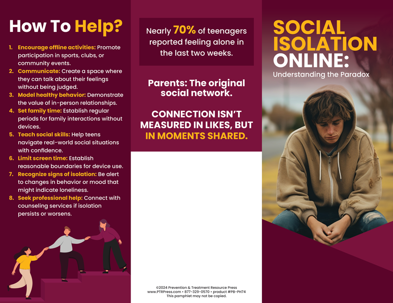 In an era of constant online connection, teens can still feel profoundly isolated. The Social Isolation Online Pamphlet helps individuals address this growing concern, offering practical tools to combat feelings of loneliness in the digital age.