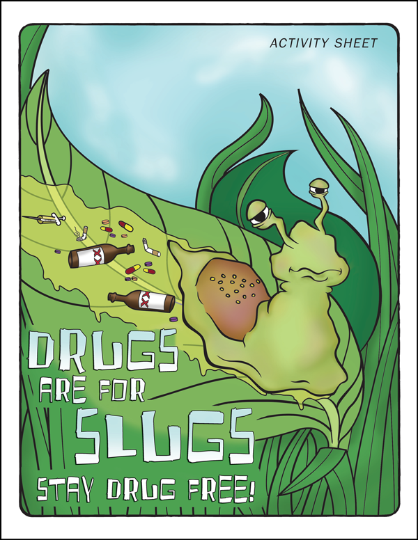 Designed for Pre-K to 1st graders, this “Drugs are for Slugs – Stay Drug Free!” Activity Sheet features a: