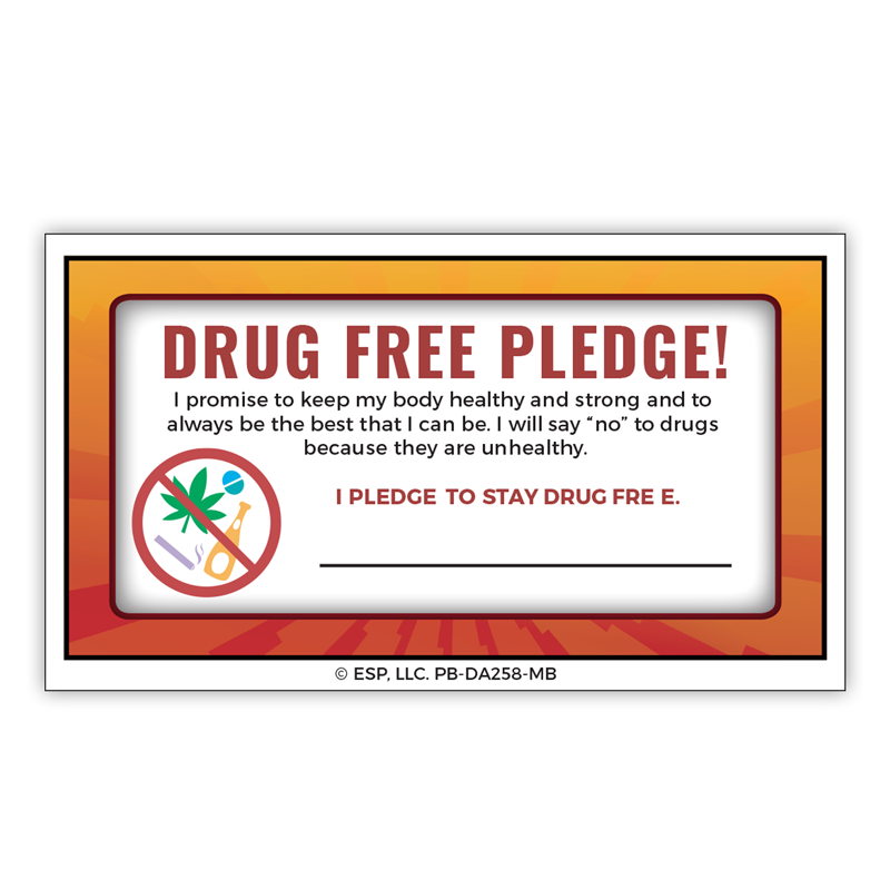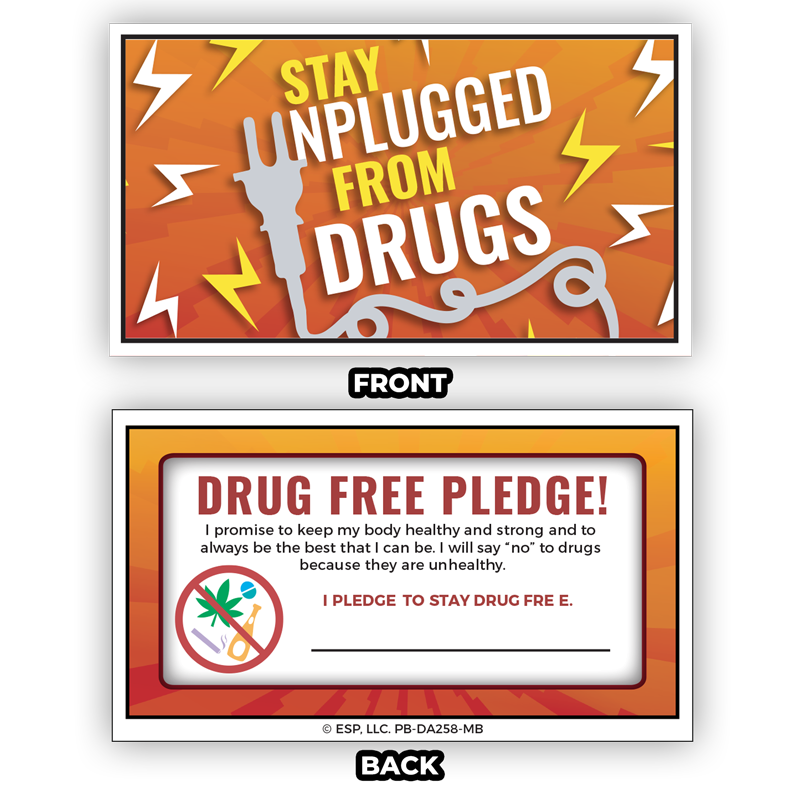 This double-sided “Stay Unplugged from Drugs” Pledge Card is a great way for children to symbolize their commitment to a drug-free lifestyle. This 3.5″ x 2″ pledge card reads: “I promise to keep my body healthy and strong and to always be the best that I can be. I will say “no” to drugs because they are unhealthy. I pledge to stay drug free.” The front of the card reads “Stay Unplugged from Drugs” and features the theme artwork. These cards last long after your drug prevention campaign has ended because they are printed on quality, heavy card stock.