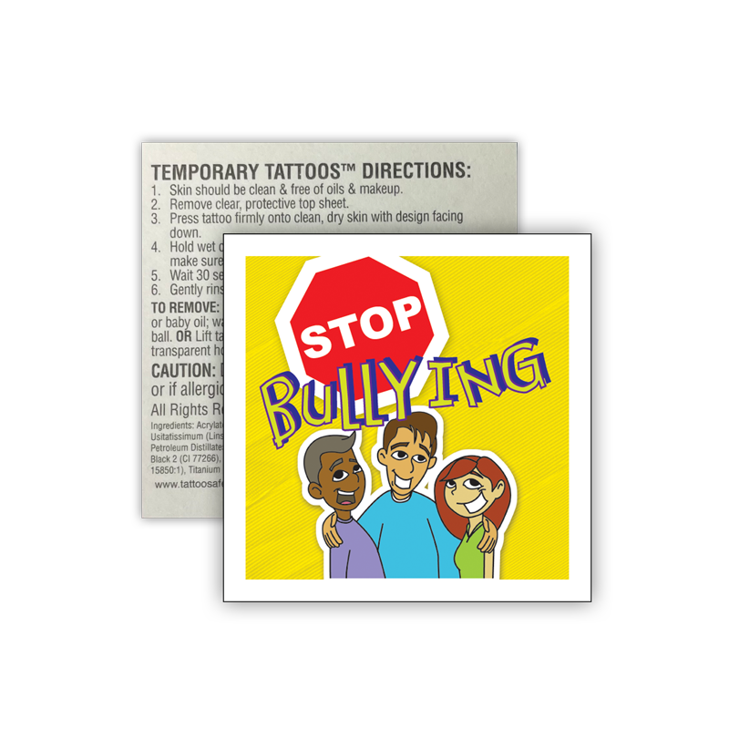 This fun, removable tattoo reinforces the message to “Stop Bullying!”