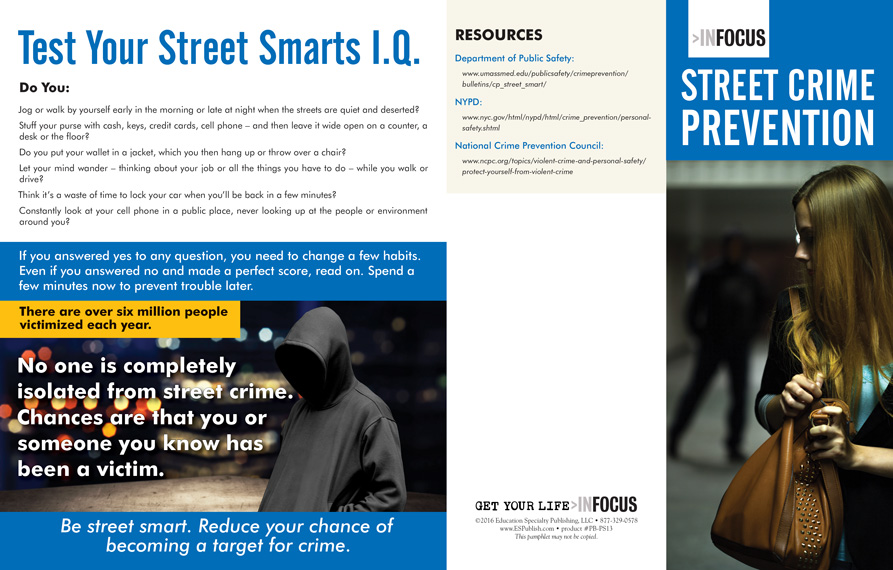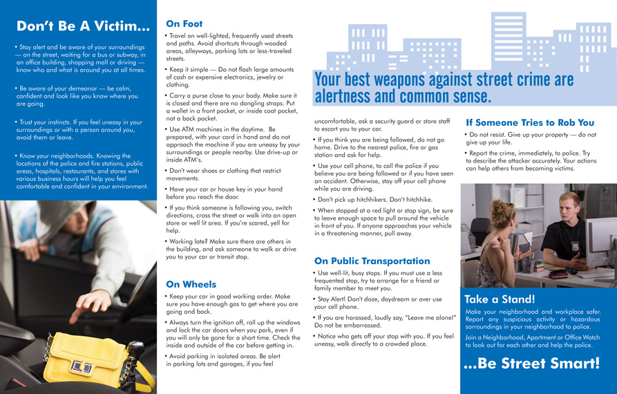 If you like this street crime prevention pamphlet, then check out more of our safety and law enforcement materials here.