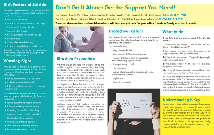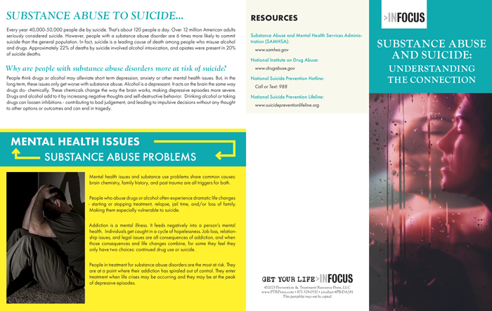 Raise awareness and foster support with our Substance Abuse and Suicide: Understanding the Connection Pamphlets. Each pamphlet delves into the intricate connection between substance abuse and suicide, unraveling sensitive topics with clarity and compassion. From understanding risk factors to providing guidance on having open conversations about mental well being.