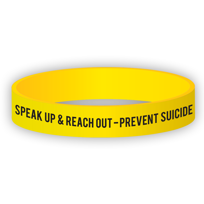 If you like these “Speak Up & Reach Out – Prevent Suicide” Silicone Wristbands, then check out our Suicide Prevention Info Tower or Matching Magnets.