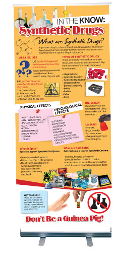 Bring clarity to your community with our retractable Synthetic Drugs Presentation Display. This display dives into the risks of synthetic drugs, from their unpredictable ingredients to the harmful effects on physical and mental health. It’s a great way to raise awareness, correct misconceptions, and start important conversations about staying safe and drug-free.