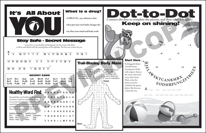 - Puzzles & Games: Fun puzzles and activities that challenge young minds while reinforcing the importance of staying drug-free