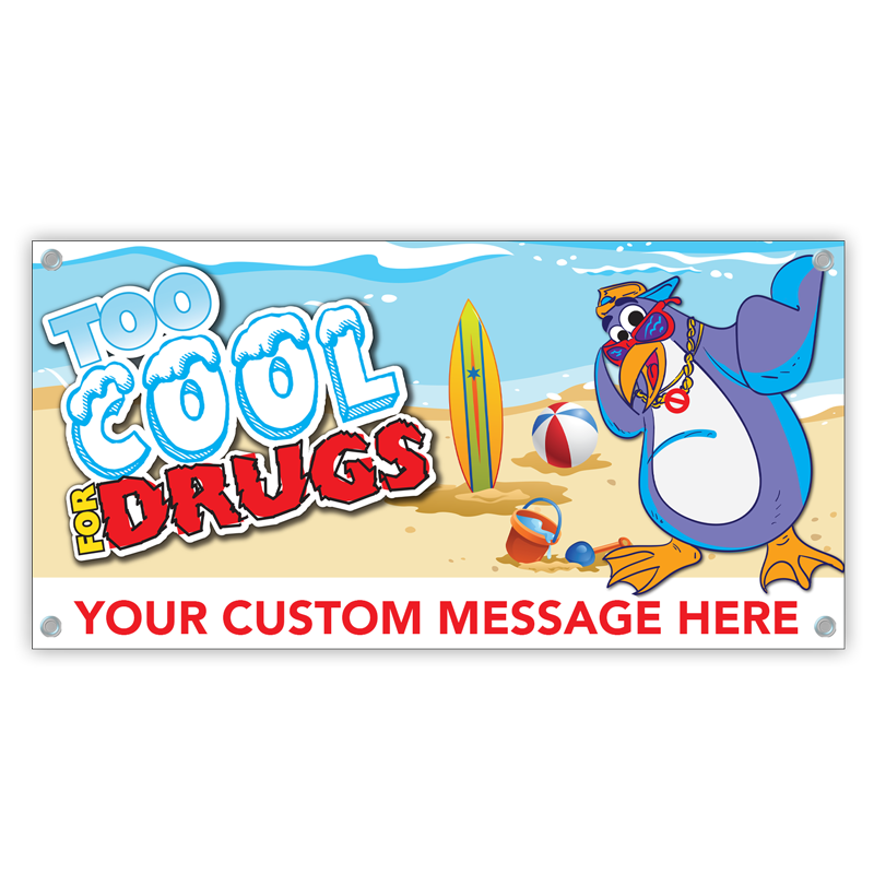 Make a bold statement with this visually fun and captivating “Too Cool For Drugs Banner” inspiring kids to make smart choices and prioritize a drug-free lifestyle. The perfect addition to your next Red Ribbon event. Stand out with our visually appealing design and show the world that being drug-free is the epitome of cool.