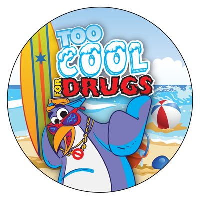 This “Too Cool for Drugs” Sticker measures 2.5″ in diameter and is sold in packs of 100. These easy-to-remove stickers feature the theme artwork and the slogan “Too Cool for Drugs.”