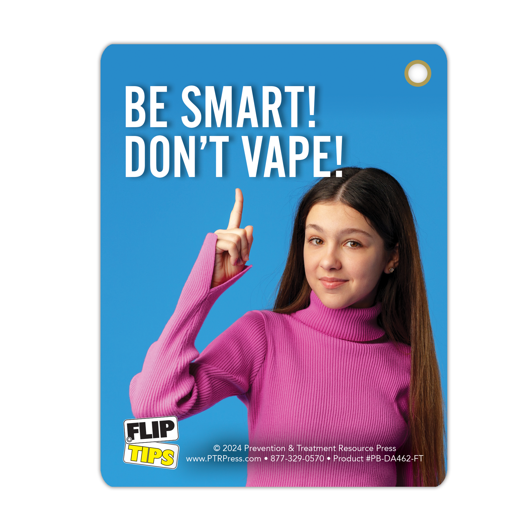 Educate kids with vaping prevention flip tips! An essential tool for sparking vital conversations and safeguarding our youth from the dangers of vaping! These pocket-sized cards deliver easy to understand information with straightforward language and impactful visuals. Whether it’s understanding the health risks of vaping or addressing addiction, each flip reveals insights into the dangers of vaping.