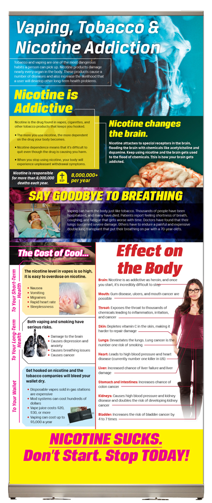 If you like this retractable display, then check out the matching “Vaping, Tobacco and Nicotine Addiction” Presentation Cards.