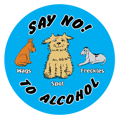 The Misadventures of Wags & Freckles Sticker reinforces to children the dangers of alcohol. The anti-alcohol sticker features Wags, Freckles, and Spot — canine companions that learn the dangers of alcohol through a series of unfortunate events. These pre-cut stickers measure 2.5″ in diameter and come in packs of 100. Additionally, the stickers are easy-to-remove (you don’t have to worry about sticky residue)!