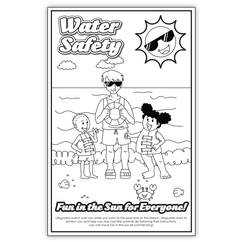 - Features our fun, themed “Water Safety” illustration that gives them a full coloring area that lets their imagination soar