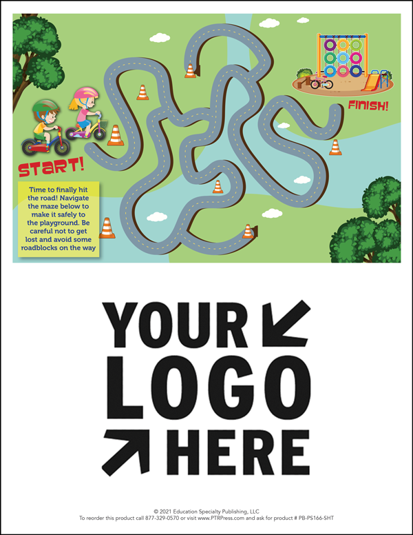 The back cover includes a full color maze featuring a boy and a girl trying to get their bikes to the playground.