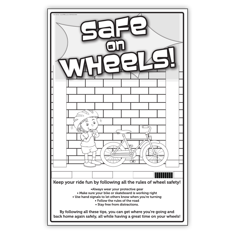 The color me poster closes with, “By following all these tips, you can get where you’re going and back home again safely, all while having a great time on your wheels!”