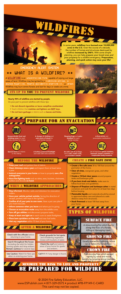 Prepare your community for wildfire season with our Wildfire Safety Presentation Cards. Packed with essential tips and strategies, these cards are tangible tools that help protect communities from the devastating effects of wildfires. Whether it’s a school event or community gathering, these cards spark conversations and inspire individuals to take proactive steps towards wildfire preparedness. The compact design ensures these cards are always within reach, making them an essential addition to any event.