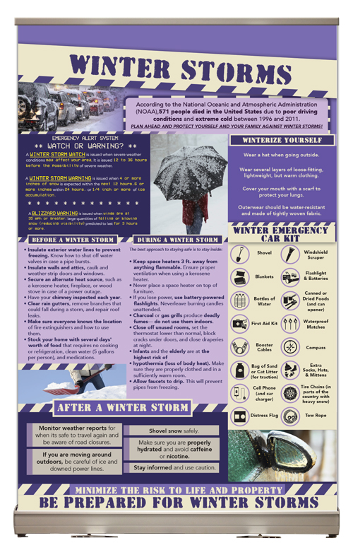 In conclusion, the display encourages your audience to “Minimize the Risk to Life and Property: Be Prepared for Winter Storms!”